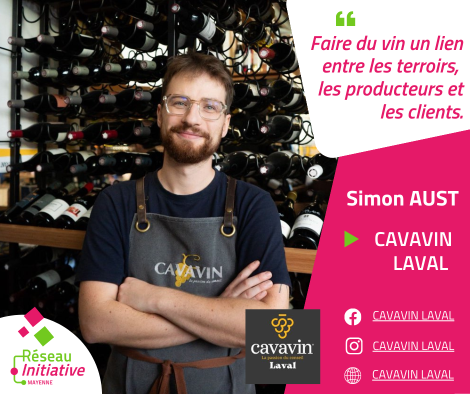 C’est à ce moment que Cavavin entre dans son histoire. Le réseau lui apparaît comme une évidence : indépendance, accompagnement, sélection qualitative de vignerons engagés et esprit de transmission. Ce qu’il apprécie chez Cavavin, c’est l’équilibre : un cadre solide, des outils professionnels, mais aucune rigidité. Une liberté préservée, essentielle pour un jeune entrepreneur. Il présente son projet d’installation dans le centre de Laval à Initiative Mayenne avant de solliciter un prêt d’honneur. Lors de son passage en comité, il révèle toute sa détermination pour intégrer les nouvelles Halles Gourmandes mais ces dernières étant toujours en construction, Simon ouvre d’abord sa boutique au Carrefour aux Toiles. Il y développe une relation de proximité, attentive et personnalisée. Lorsque son commerce déménage au coeur des Halles Gourmandes en juin 2025, sa clientèle le suit. Une preuve forte : dans ce métier, c’est la relation qui fidélise, pas l’adresse.